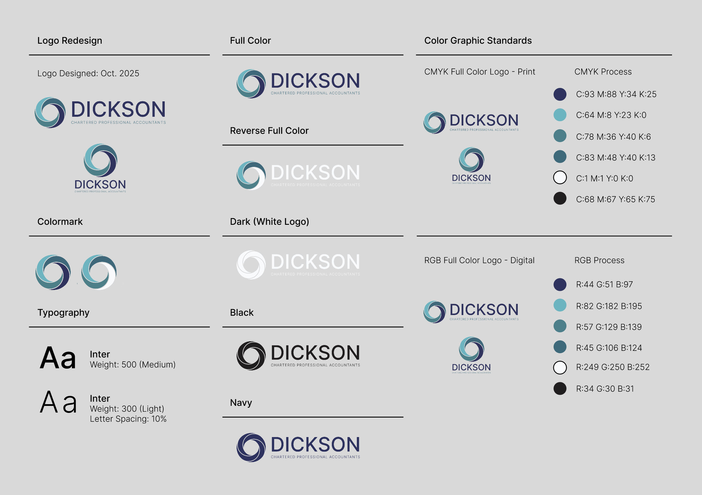When Dickson CPAs launched their updated website, their existing logo no longer reflected the modern look of their brand. I was brought in to redesign it, keeping the identity recognizable while giving it a more contemporary feel. The result is a mark that feels both familiar and forward-looking, nicely aligned with their new digital presence.